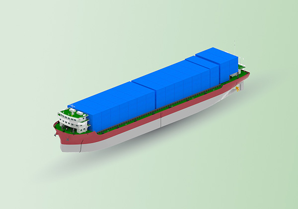 該船型設(shè)計(jì)獨(dú)具匠心,總長 119.98m,型寬 21.80m,型深 8.50m。在裝載能力方面表現(xiàn)出色,散貨裝載量可達(dá)15,000噸,標(biāo)準(zhǔn)集裝箱裝載量高達(dá)735TEU,總噸位 9500載重噸。